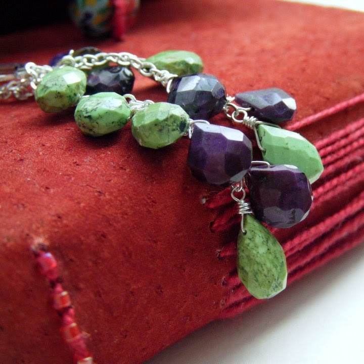 I love Nightskyjewelry and the wonderful Sharon who makes all of the gorgeous earrings. My favorites this time are the gaspeite with the black silver work. The stone is rare and the silver wire work makes them really unique.